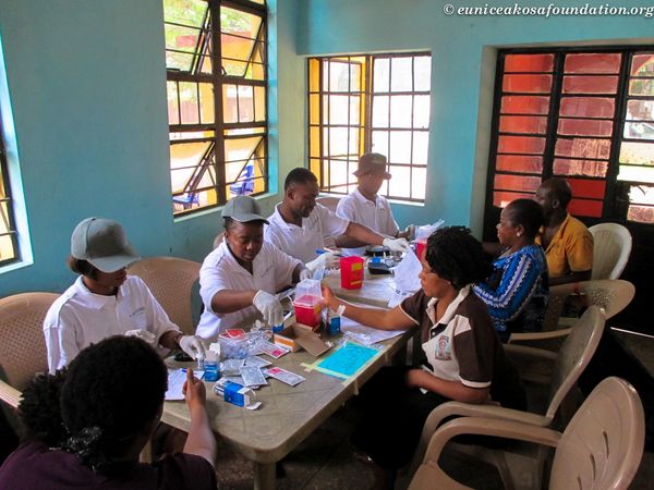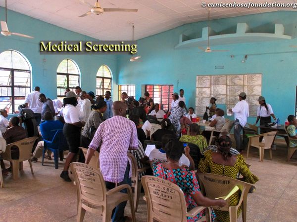 June 2015 marks the anniversary of the first every medical mission conducted by the Eunice Akosa Foundation. With the help of the Akosa family and local volunteers, the foundation was able to conduct bio-medical screening on over 100 people. The aim of the medical mission is to provide free screening to low income locals who may not have to opportunities to go to the hospital while also raising awareness of illness that may not be noticed until it is fatal.